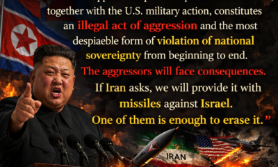 BREAKING: 🇰🇵 Supreme Leader of North Korea, Kim Jong Un: “The military attack against Iran, launched by Israel with the active support and sponsorship of the United States, together with the U.S. military action, constitutes an illegal act of aggression and the most despicable form of violation of national sovereignty from beginning to end. The aggressors will face consequences. If Iran asks, we will provide it with missiles against Israel. One of them is enough to erase it.”